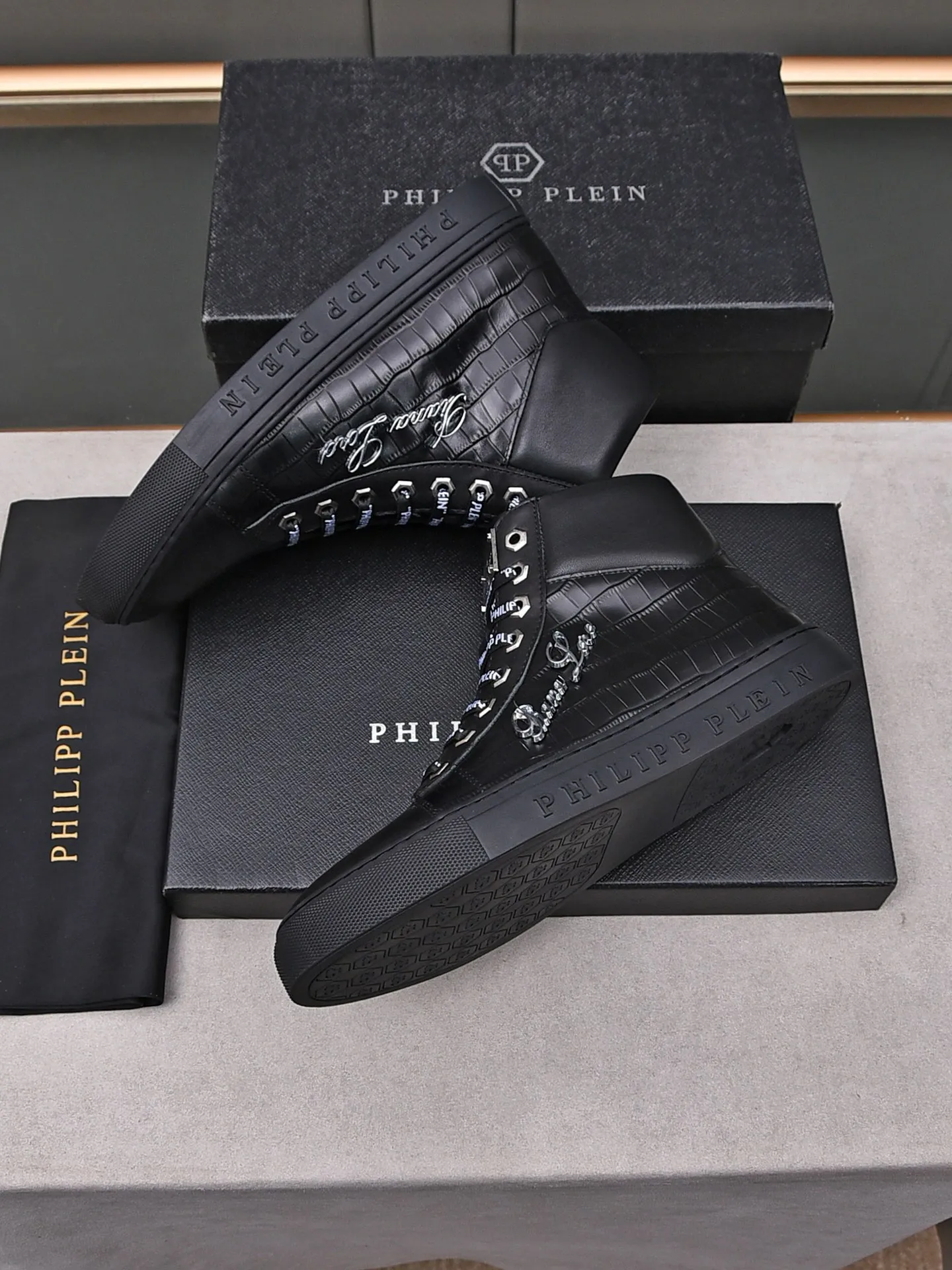 Philipp Plein PP High Tops Shoes For Men #1400017, $88.00 USD, [ITEM#1400017], Philipp Plein PP High Tops Shoes Replica! Gender MenSize US 4=EUR(38), US 5=EUR(39), US 6=EUR(40), US 7=EUR(41), US 8=EUR(42), US 9=EUR(43), US 10=EUR(44) from HahaReps.Ru.